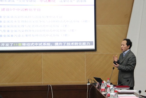 中心主任柴立元教授向技术委员会做中心中期进展报告。他重点汇报了近两年来中心目标完成情况、中心运行绩效、中心代表性技术实施情况、中心存在的问题和下一步工作任务。中心在技术推广上取得的成绩以及在科研创新方面做出的努力获得了技术委员会专家们的一致好评,专家们还对中心重点工程成果应用及今后发展方向等提出意见和建议。